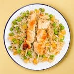 Cooked rice (water, rice, sunflower oil), Seasoned chicken breast (chicken breast fillets, water, modified corn starch, salt), Water, Turnips, Peas, Concentrated lemon juice, Onions, Modified starch (corn, tapioca or potato), Canola oil, Garlic (dehydrated garlic, water, canola oil, citric acid), Vegetable broth flavour (yeast extract, salt, carrot powder, tomato powder, onion powder, leek powder, garlic powder, herbs and spices (bay leaf, celery, thyme)), Red wine vinegar (sulphites), Salt, Xanthan gum, Paprika, Herbs, Spices.
