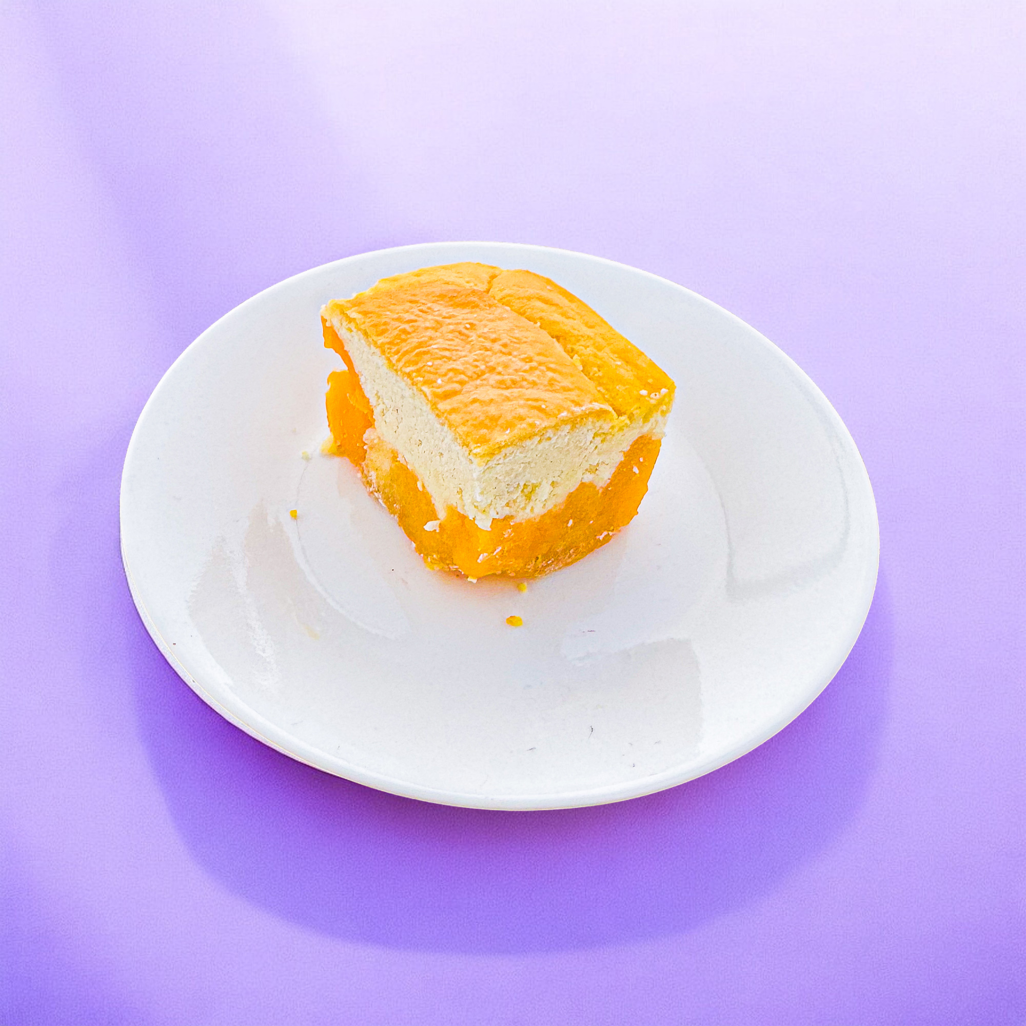 Modified milk ingredients, Orange, Sugar, Wheat flour, Eggs, Wheat starch, Canola oil, Glucose-Fructose, Palm oil, Pectin, Modified corn starch, Salt, Baking powder, Citric acid, Xanthan gum, Emulsifiers (mono glycerides, propylene glycol esters of fatty acid, maltodextrin, cellulose, sodium stearate), Natural flavour.